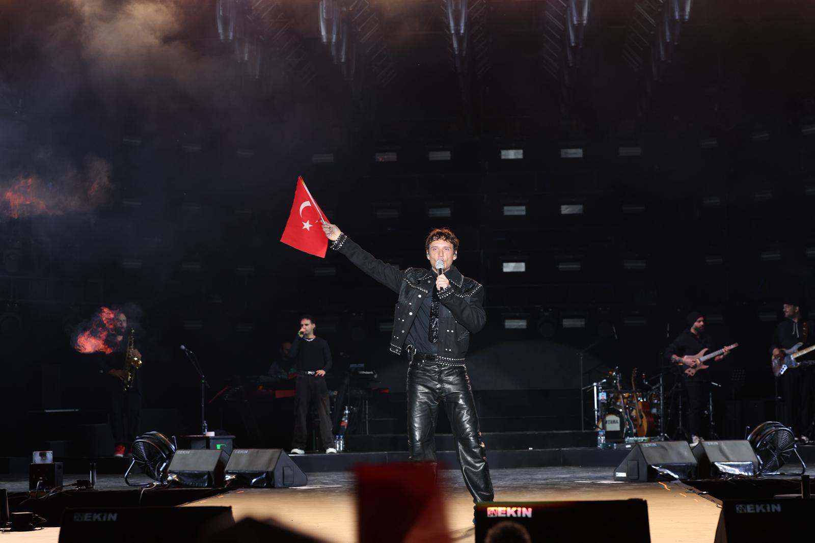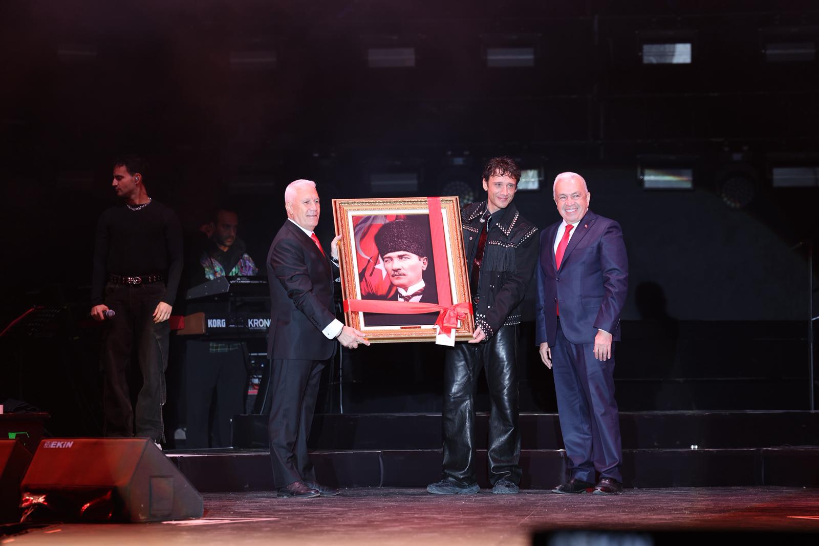 Bursa Büyükşehir Belediyesi ve Nilüfer Belediyesi’nin birlikte düzenlediği Cumhuriyet Bayramı kutlamaları, DJ performansı devam etti. Müziğin ritmine kendini bırakan yüz binlerce Bursalı, telefon ışıklarıyla alanda adeta görsel şölen yaşattı. Ünlü sanatçı Edis’in sahneye çıkmasıyla da coşku doruğa çıktı. Edis’in muhteşem sahne performansı, bayram coşkusu yaşayanlara keyifli anlar yaşattı. Bursalıların birçok parçasına eşlik ettiği Edis’e, gecenin sonunda Bursa Büyükşehir Belediye Başkanı Mustafa Bozbey ve Nilüfer Belediye Başkanı Şadi Özdemir, Atatürk posteri, İznik çinisi ve çiçek vererek teşekkür etti.