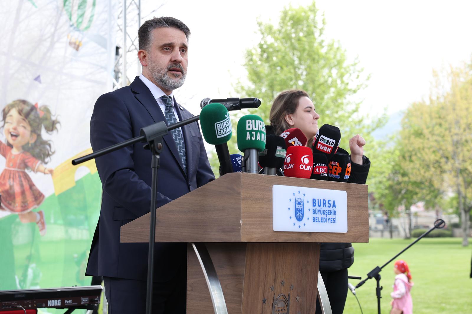 23 Nisan 1920’de Türkiye Cumhuriyeti’nin temellerinin atıldığını hatırlatan Büyükşehir Belediyesi Başkan Vekili Şahin Biba, Gazi Mustafa Kemal Atatürk’ün bugünü çocuklara armağan ederek gelecek nesillere ne kadar güvendiğini ve önem verdiğini gösterdiğini vurguladı. Çocukların, geleceğin teminatı olduğunu belirten Başkan Vekili Biba, “Bursa Büyükşehir Belediyesi olarak çocuklarımızın eğitimden spora, sağlıktan sanata kadar her alanda yanında olduk. Bundan sonra da daha fazla gayret göstererek yanlarında olacağız. Çocuklarımızın, şanlı Türk Bayrağı’nın gölgesinde ülkemizi daha iyi yerlere taşıyacağına inanıyoruz” dedi.